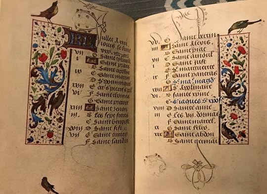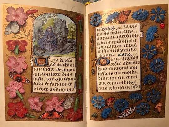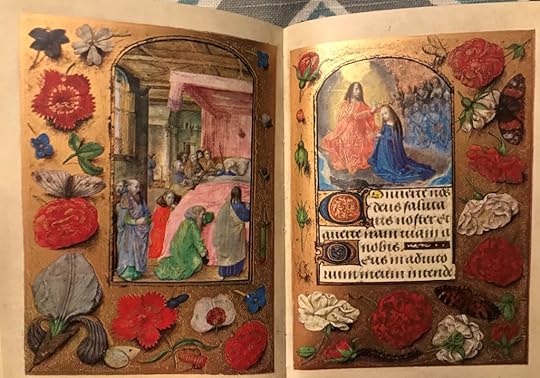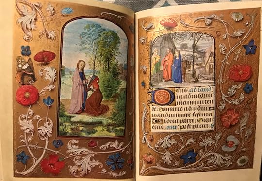 I have been fascinated with Books of Hours for a long time. I finally found this beautiful replica on Amazon and wanted to share with you what it looks like on the inside and a little bit of information about it. I am by no means on expert of these types of books, nor manuscripts for that matter and welcome any input from others who know more about it than me.