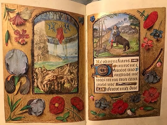 The Master of Mary of Burgundy Book of Hours has gold-gilded pages and is printed on heavy, glossy paper. The printed version of each picture looks as if it were painted in real gold, giving you a little idea of what the original would have looked like. It is very colorful, as you can see from the above pictures.