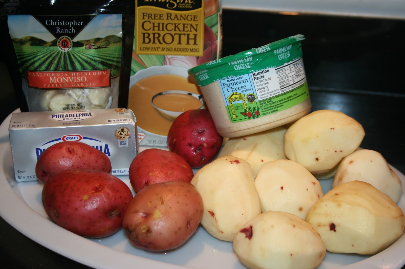 It worked! You're going to love these potatoes ---- the garlic roasts along with the potatoes in the cooker in a bit of chicken broth, then gets mashed right on in with both cream and Parmesan cheeses.