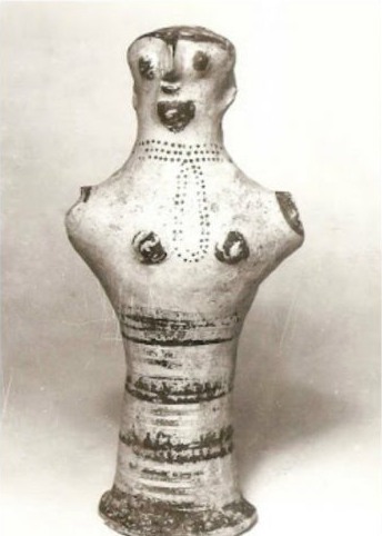 Î ÏÏκειÏαι για μια ÏÏάνια ÏεÏίÏÏÏÏη ÏÎ¿Ï Îνα ειδÏλιο καÏÎληξε ÏÏ ÎºÏÎÏιÏμα ÏάÏÎ¿Ï , καθÏÏ Ïα ÏεÏιÏÏÏÏεÏα ανακαλÏÏθηκαν Ïε ιεÏά και αÏοθÎÏεÏ. Îίναι η άλλÏÏ Î»ÎµÎ³Ïμενη 'ÎºÏ Ïία με Ïο μοÏÏι', Îνα Î¼Ï ÎºÎ·Î½Î±ÏÎºÏ ÎµÎ¯Î´Ïλο Ïο οÏοίο αÏεικονίζει μια Î³Ï Î½Î±Î¹ÎºÎµÎ¯Î± μοÏÏή με ÏÏοÏήλαÏÎ·Ï ÎºÎ±ÏαÏÎºÎµÏ Î®Ï ÏÏμα και Îνα ÎµÏ Î´Î¹Î¬ÎºÏιÏο μοÏÏι ÏÏο ÏÏÏÏÏÏο. ΣÏην ÏÏαγμαÏικÏÏηÏα ÏμÏÏ Î´ÎµÎ½ ÏÏÏκειÏαι για ÎνÏονη ÏÏιÏοÏÏ Îα, αλλά για Ïο ÏαγÏνι ÏÎ·Ï Ïο οÏοίο είναι ζÏγÏαÏιÏÏÏ. ΣÏμÏÏνα με Ïην Î´Ï Î. ΠλιάÏÏικα, ÎÏÏαιολÏγο ÏÎ¿Ï ÎÎ¸Î½Î¹ÎºÎ¿Ï ÎÏÏÎ±Î¹Î¿Î»Î¿Î³Î¹ÎºÎ¿Ï ÎÎ¿Ï ÏÎµÎ¯Î¿Ï , μÏνον δÏο Î¼Ï ÎºÎ·Î½Î±Ïκά είδÏλα, αναμÏίβολα Î³Ï Î½Î±Î¹ÎºÎµÎ¯Î±, διαθÎÏÎ¿Ï Î½ γÏαÏÏÏ ÏαγÏνι ÏÎ¿Ï Î¿Î¼Î¿Î¹Î¬Î¶ÎµÎ¹ με μοÏÏι: η ÎÏ Ïία με Ïα ΧÎÏια ÏÏο ΣÏÎ®Î¸Î¿Ï Î±ÏÏ Ïο ÎÏηÏÎºÎµÏ ÏÎ¹ÎºÏ ÎÎνÏÏο ÏÏν ÎÏ ÎºÎ·Î½Ïν και η ÎÏ Ïία ÏÎ·Ï Î¦Ï Î»Î±ÎºÏÏÎ®Ï Î±ÏÏ Ïο ανÏίÏÏοιÏο ιεÏÏ ÏÏη Îήλο. 130 ÏÏÏνια μεÏά, Î±Ï ÏÏ Ïο ειδÏλιο ÏαÏαμÎνει εξαιÏεÏικά ÏÏάνιο ÏÏ ÏÏÎ¿Ï Ïην Ïελική ÏαÏική ÏÎ¿Ï ÏÏήÏη, αÏÎ¿Ï Î¼Ïνον Îνα ακÏμη αÏÏ Ïην ΡÏδο καÏÎληξε ÏÏ ÎºÏÎÏιÏμα ÏάÏÎ¿Ï . Îλα Ïα Ï ÏÏλοιÏα είδÏλα ÏÎ¿Ï Î¼Ï ÎºÎ·Î½Î±ÏÎºÎ¿Ï ÎºÏÏÎ¼Î¿Ï , ακÎÏαια και θÏÎ±Ï ÏμαÏικά, ÏÎ¿Ï Î±Î½ÎÏÏονÏαι Ïε ÏÎ¬Î½Ï Î±ÏÏ 100 δείγμαÏα, ÎÏει αÏοδειÏθεί ÏÏι διαδÏαμάÏιζαν ÎºÎ¿Î¼Î²Î¹ÎºÏ ÏÏλο ÏÏην άÏκηÏη ÏÎ·Ï Î¼Ï ÎºÎ·Î½Î±ÏÎºÎ®Ï Î»Î±ÏÏÎµÎ¯Î±Ï ÎºÎ±Î¹ βÏίÏκονÏαι Ïε ιεÏά, Ïε οικιÏÏικά ÏεÏιβάλλονÏα ή Ïε αÏοθÎÏεÏ. ÎÏÏÏ Î®Ïαν μÎÏÎ¿Ï ÏÎ·Ï Î´Î¹Î±ÎºÎ¿ÏμήÏεÏÏ ÏÎ¿Ï ÎµÎ¹Î´ÏÎ»Î¯Î¿Ï Î® Îνα ÏÏμβολο ÏÎ·Ï ÏελεÏÎ¿Ï ÏÎ³Î¯Î±Ï ÏÎ·Ï Î¹ÎºÎµÏίαÏ. ÎÏÏÏ ÎµÎ¾Î·Î³ÎµÎ¯ η Î´Ï ÎαÏιλική ΠλιάÏÏικα, ο ÎμηÏÎ¿Ï Î±Î½Î±ÏÎÏεÏαι ÏÏην Îλιάδα Ïε μια ÏειÏονομία ÏÎ¿Ï Îκανε ο ικÎÏηÏ.[8] Îγγιζε Ïο ÏαγÏνι ή ανθεÏεÏνα[10] ÏÎ¿Ï Î¹ÎºÎµÏÎµÏ Î¿Î¼ÎÎ½Î¿Ï ÎºÎ±Î¹ εκλιÏαÏοÏÏε για οίκÏο.[9] ÎÏίÏηÏ, Ïο ειδÏλιο είÏε Ïα ÏÎÏια ÏÎ¿Ï Ï ÏÏμÎνα, αλλά ÎÏÏαÏαν. ΠιθανÏν Î±Ï ÏÏÏ Î®Ïαν ο λÏÎ³Î¿Ï ÏÎ¿Ï Îγινε εναÏÏθεÏή ÏÎ¿Ï ÏÏον ÏάÏο ÏÏν ÎÏ ÎºÎ·Î½Ïν. Î Ïιν αÏÏ Ïη ÏÏήÏη ÏÎ¿Ï ÏÏ ÎºÏεÏίÏμαÏοÏ, λειÏÎ¿Ï ÏγοÏÏε ÏÏ ÎµÎ¹ÎºÏνα - εÏιÏάνεια ÏÎ·Ï Î¸ÎµÏÏηÏÎ±Ï ÏÏÎ¿Ï Ïην οÏοία αÏÎµÏ Î¸ÏνονÏαν οι εÏικλήÏÎµÎ¹Ï ÏÏν ÏιÏÏÏν. Îι εÏιÏκÎÏÏÎµÏ ÏÎ¿Ï ÎÎ¸Î½Î¹ÎºÎ¿Ï ÎÏÏÎ±Î¹Î¿Î»Î¿Î³Î¹ÎºÎ¿Ï ÎÎ¿Ï ÏÎµÎ¯Î¿Ï Î¼ÏοÏοÏν να Î´Î¿Ï Î½ Ïο ειδÏλιο μÎÏα ÏÏη ÎÏ ÎºÎ·Î½Î±Ïκή ÎÎ¯Î¸Î¿Ï Ïα ÏÏην ÏÏοθήκη 33 ÏÏÎ¿Ï ÎµÎºÏίθενÏαι Ïήλινα ειδÏλια, ομοιÏμαÏα και ζÏÏμοÏÏα αγγεία αÏÏ Î¸Î±Î»Î±Î¼ÏÏοÏÏ ÏάÏÎ¿Ï Ï ÏÎ·Ï ÎÏγολίδαÏ.... Î Dietrich αναÏεÏÏÎ¼ÎµÎ½Î¿Ï ÏÏην ÎÏ ÎºÎ·Î½Î±Ïκή θεά ÏÎ·Ï ÏÏÏεÏÏ ÏημειÏνει ÏÏι η Îλληνική θÏηÏκεία ÏÏοÎÎºÏ Ïε ÏÏ Î±ÏοÏÎλεÏμα ÏοικίλÏν εÏιÏÏοÏν, μεÏαναÏÏεÏÏεÏν και εξελίξεÏÏ ÏÏον ÏÏÏνο για δε Ïην ÎÏ ÎºÎ·Î½Î±Ïκή θεά ÏÎ·Ï ÏÏÏεÏÏ Î³ÏάÏει:[17]ΠεÏιÎÏγÏÏ, Ïο ιÏÏÏ ÏÏÏεÏο ÏαÏάδειγμα ÏÎ¿Ï Î±Î½Î±ÏÎÏεÏαι ÏÏεÏικÏÏ ÏÏοÎÏÏεÏαι αÏÏ Ïην ÎÏίνη, ÏÏ Î³ÎºÎµÎºÏιμÎνα αÏÏ Ïο Î¿Î¹ÎºÎ¹Î±ÎºÏ Î¹ÎµÏÏ ÏÎ¿Ï 12Î¿Ï Î±Î¹ÏÎ½Î¿Ï ÏÏοÏανοÏÏ Î¼Î¹Î½ÏÎ¹ÎºÎ®Ï ÎºÎ±ÏαγÏγήÏ. ÎÏοÏελείÏαι αÏÏ Î¼Î¯Î± ÏÏεÏικά μεγάλη κεÏαλή ÏÏοÏήλαÏÎ·Ï ÎºÎµÏαμεικήÏ, ÏÎ¿Ï ÏεÏιβάλλεÏαι αÏÏ ÏÎ¹Ï ÏÏ Î½Î·Î¸Î¹ÏμÎÎ½ÎµÏ Î¼Ï ÎºÎ·Î½Î±ÏκÎÏ Î¼Î¿ÏÏÎÏ Â«Î¨Â», καθÏÏ ÎºÎ±Î¹ αÏÏ Î¼Î¿ÏÏÎÏ ÏÎ·Ï Î¼Î¹Î½ÏÎ¹ÎºÎ®Ï Î¸ÎµÎ¬Ï Î¼Îµ Ï ÏÏμÎνα Ïα ÏÎÏια114. Τα ÏÏοιÏεία είναι αÏαÏή, ÏÏÏÏÏο, εÏειδή δεν μÏοÏεί να Ï ÏάÏξει βεβαιÏÏηÏα για Ïο ÏÏλο ÏÎ·Ï Î¸ÎµÏÎºÎ®Ï Î¼Î¿ÏÏÎ®Ï ÏÎ·Ï Î¿ÏÎ¿Î¯Î±Ï Î¼Ïνον η κεÏαλή ÏÏθηκε. Î Nilsson είναι ÏεÏειÏμÎÎ½Î¿Ï ÏÏι ÏÏην ÏεÏίÏÏÏÏη Î±Ï Ïή ÎÏÎ¿Ï Î¼Îµ να ÎºÎ¬Î½Î¿Ï Î¼Îµ με Îναν θεÏ, δηλαδή Ïον «ÎÏÏονÏα ÏÎ·Ï ÎÏίνηÏ» ή Ïον Îία με Ïον κεÏÎ±Ï Î½Ï ÏÎ¿Ï 115. Îια Ïον Evans, Ïον Persson και Ïιο ÏÏÏÏÏαÏα για Ïον Nicholls, Ïο κεÏάλι ήÏαν μÎÏÎ¿Ï Î¼Î¹Î±Ï Î¸Îµ