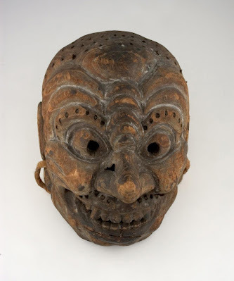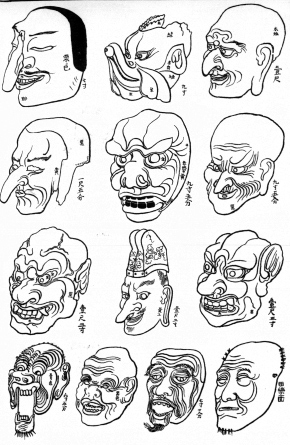 https://books.google.gr/books?id=ge8c..., B. 1990. The Japanese Theatre: From Shamanistic Ritual to Contemporary Pluralism, Princeton University Press.ÎÏÏ Ïον/Ïην p. 36Whichever might be the immediate origin of gigaku masks and performances, several questions about their remote origin remain open. A study of the characteristics of the gigaku masks reveals that they represent myths and types which are certainly not Chinese. The face masks seem to be connected with the carving art of the Scythians. The head masks have occasioned many attempts to prove the existence of a bridge between the theatre of China and Japan, and the theatre of Greece and Rome, across the Near East and India. As a matter of fact, a close comparison or some gigiaku masks with late Roman comic masks presents some striking similarities. One hypothesis sees in the episode of Konron, the women of Wu and Rikishi a transformation of a Greek myth.{The mask is that of the barbarian Konron, who in the drama clumsily attempts to court the lovely Go-Jo, princess of the Chinese kingdom of Wu. https://www.britishmuseum.org/collect... https://en.wikipedia.org/wiki/Gigaku} {There are two wrestler archetype characters, the KongÅ (éå) or "Vajra-yaká¹£a" who is open-mouthed,[10] and the Rikishi (å士) who is closed mouthed.[10][11] These two are said to be analogous to the two NiÅ or guardian gate statues, who respectively form the open and closed A-un shapes in their mouths.} Hera and Iris would be the models for the women of Wu, satyrs for Konron, Heracles for Rikishi. The possibility of a long arch stretching from the Near East to Japanâtraveled by nomadic populations who combined the western art of carving masks with Indian mythology and Buddhist faithâremains as intriguing and fascinating as the surprising presence of a Greek modeling of a pillar in the Horyi.iji temple of Nara, or the discovery in Japan of the winged horse, possibly a Pegasus-motif, in decorative patterns contemporary to gigaku.6-------------
