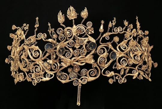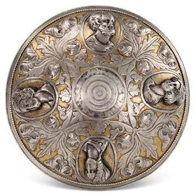 [1]. http://odysseus.culture.gr/h/4/gh430..... https://www.jewelpedia.com/news-39-23.... https://web.archive.org/web/201412022.... Chen Yongzhi, Song Guodong, Ma Yan 2016. [12]. Chen Yongzhi, Song Guodong, Ma Yan. 2016, p. 51, figs. 29, 30, color Pl. VI.Gilt-silver bowl [Figs. 29, 30; Color Pl. VI]. One of the most striking artefacts of all those excavated in the cemetery, this bowl, found in Tomb M1, is 14 cm in diameter and stands 4 cm high. The inside is smooth and has no decoration. The outside is framed by a pearllike band, and most of the surface covered by acanthus leaves in low relief set off against a gilded background.Four projecting âbossesâ depict characters from Greek mythology: Zeus, Hera, Aphrodite and Athena.ÎÏιÏÏÏ ÏÏμÎνη αÏÎ³Ï Ïά Ïιάλη [Îικ. 29, 30; ΧÏÏμα Πλ. VI]. Îνα αÏÏ Ïα Ïιο ενÏÏ ÏÏÏιακά ÏεÏÎ½Î¿Ï ÏγήμαÏα αÏÏ Î±Ï Ïά ÏÎ¿Ï Î±Î½Î±ÏκάÏηκαν ÏÏο νεκÏοÏαÏείο, Î±Ï ÏÏ Ïο ÏεκμήÏιο, ÏÎ¿Ï Î²ÏÎθηκε ÏÏον ÏάÏο Î1, ÎÏει διάμεÏÏο 14 cm και ÏÏÎ¿Ï 4 cm. Το εÏÏÏεÏÎ¹ÎºÏ ÎµÎ¯Î½Î±Î¹ λείο και δεν ÏÎÏει διακÏÏμηÏη. Το εξÏÏεÏÎ¹ÎºÏ ÏλαιÏιÏνεÏαι αÏÏ Î¼Î¹Î± μαÏγαÏιÏαÏÎνια Ïαινία και Ïο μεγαλÏÏεÏο μÎÏÎ¿Ï ÏÎ·Ï ÎµÏιÏÎ¬Î½ÎµÎ¹Î±Ï ÏÎ¿Ï ÎºÎ±Î»ÏÏÏεÏαι αÏÏ ÏÏλλα Î±ÎºÎ¬Î½Î¸Î¿Ï Ïε ÏÎ±Î¼Î·Î»Ï Î±Î½Î¬Î³Î»Ï Ïο ξεκινά ÏÎ¬Î½Ï Ïε Îνα εÏιÏÏÏ ÏÏμÎνο ÏÏνÏο.ΤÎÏÏεÏÎµÎ¹Ï ÎºÎµÏαλÎÏ ÏÎ¿Ï ÏÏÎ¿Î²Î¬Î»Î»Î¿Ï Î½ αÏÎµÎ¹ÎºÎ¿Î½Î¯Î¶Î¿Ï Î½ ÏαÏακÏήÏÎµÏ Î±ÏÏ Ïην ελληνική Î¼Ï Î¸Î¿Î»Î¿Î³Î¯Î±: Ïον Îία, Ïην ÎÏα, Ïην ÎÏÏοδίÏη και Ïην Îθηνά.