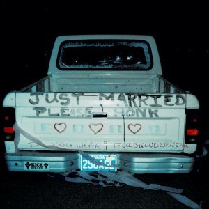 For my slightly delicate readers, I chose an innocuous photo for this post. Trust me, there were other photos with more graphic phrases. My dear friends and family were having a creative streak the night my husband and I were married.