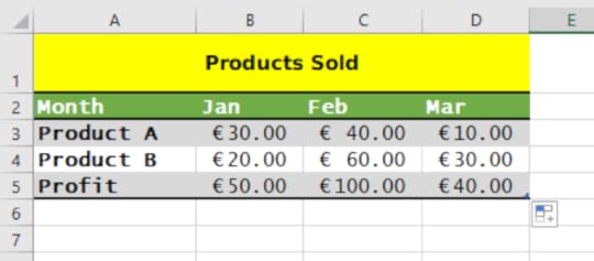 9. Hover the mouse pointer over the bottom right hand corner of the active cell