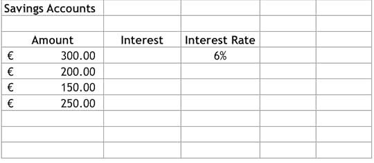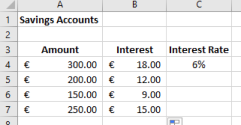 4. To do this, we need to multiply the interest rate in C4 by each of the amounts