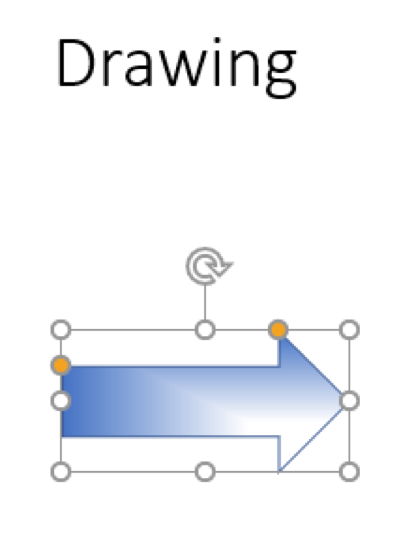Open a new blank presentation On the Home tab in the Slides group, select Layout Select Title Only Give the first slide a title of ‘Drawing’ On the Home tab in the Drawing group, select the Arrow Right Right-click on the shape and choose Format Shape