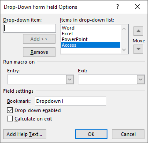 15. Type in “Excel” “PowerPoint” and “Access” to include as Items in the drop-down list