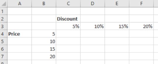 2. In this example, we want to find out the discount based on the price of an item. This will calculate the discount for the item if it is priced at €5, €10, €15 and €20. This calculation will also calculate the discount applied to each price at different percentages including 5%, 10%, 15% and 20%. For example, using mixed referencing, we can check what discount will be applied to the item if it is €15 and the discount is 10% in cell D6.