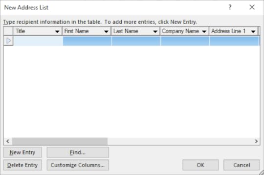 5. Click the Customize Columns button to enter in the field names that will be put into your letter: First Name, Last Name, Address Line 1, Address Line 2 and Town