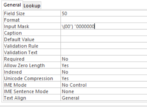 Input Masks in Microsoft Access