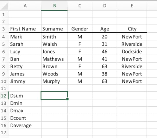 Database Functions in Excel
