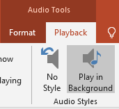 3. On the Audio Tools – Playback tab in the Audio Styles group, select Play in Background