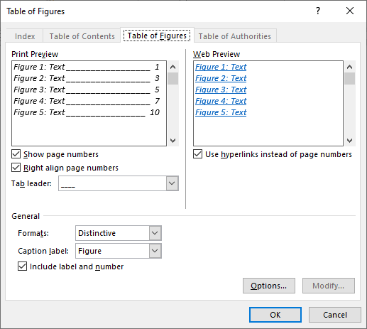 Table of Figures in Microsoft Word