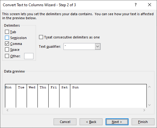 5. Select the Comma checkbox and click Next