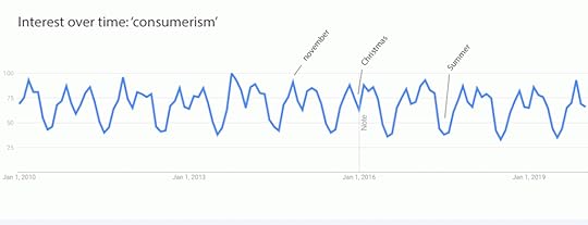 There’s a pattern here, reliably repeating over this ten years of data from Google. The number of people searching for ‘consumerism’ leaps in November. It dips during Christmas and picks up again ...