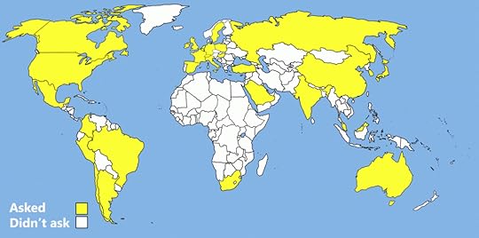 However, I would like to point out a problem with the distribution of opinion. I made a quick map of the countries where citizens had an opportunity to take part in the survey, and those you didn’t ask: