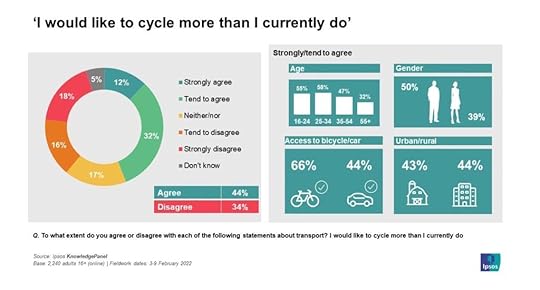 44% of people in the UK would like to cycle more than they do, according to a survey from Ipsos Mori. It’s a positive endorsement of policies for active travel, which is an important part of reducing transport emissions.