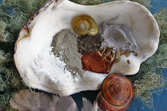 River Clay- the grey mud along the banks of certain creeks and brooks is soft and murky and easily filtered and poured into molds, and the rock clay dries quickly outside the shelf of the riverside away from all the moisture, and when powdered can become some of the most beautiful brown pottery. There's a lot of death in the clay, those spirits must be appeased and respected and placated before granting consent to be taken.