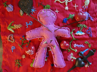 Horseshoes, rusted nails, shells, twisted branches and animal skulls it would appear that every folk witch in the world has their own use for red thread and woven magics. It has been incredibly connecting, and affirming, this realization that no matter the denominations of magic we practice, we share a common spiritual center, a common animistic thread that tells each of us to collect from the land and bind what we find together to make a practice that is whole and good. The familiarity was fascinating; if you take a look at the pictures posted, you will see a definite trend in what folk witches the world over need to do their works, and it would appear we are riding similar waves in our practices.