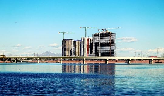 my photos of blooming Palo Verde trees (morning & sunrise) / my recent Tempe Town Lake sunset photo taken by Larissa