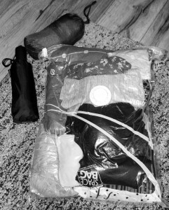 A sturdy portable umbrella is also a must!Wearing one pair of earrings from start to finish, I don’t fuss with jewelry.I roll my clothes tightly then put them in a compression bag (pictured), with what I need first toward the opening to avoid having to take everything out at the start of my trip. Easy enough to put together should that happen. I keep socks and underclothing in the interior zippered section of my suitcase. Toss in a scented sachet to keep things fresh. [image error]For Scotland, I wore yoga pants on the plane and zipped my four jeans. Yoga pants don’t require a belt (security hassle) and offer comfort and warmth on long flights. I pack more tops than pants, two pj’s, and only one dress (long, non-wrinkling knitted).Worn clothes are either rolled and placed in the back of the zipped bag or layered on top of bag, if room allows. I also take advantage of the outer zipped area of my small suitcase. Not needed for this trip, a laundry mat helped last year in Belgium.My grandmother, born in 1920 and raised on a southern farm, always said, “There are two things you shouldn’t scrimp on: quality shoes and a good bed.” Hopefully your travels include a good bed and quality sleep (bring earplugs and a blindfold).