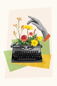 ) / image of typewriter, flower & hand by Roman Samborskyi