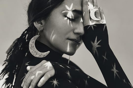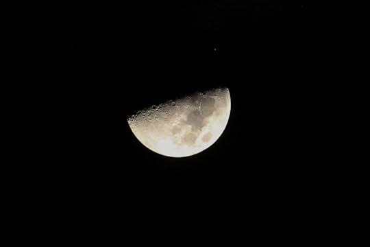featured photo of a woman covered in star lights and wearing moon jewelry by Zolotarevs / my first quarter moon photo taken March 6th