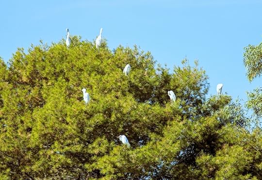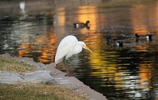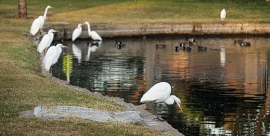 One alone would have caused me to squeeze my bike’s hand breaks and take in the scene, but what I noticed nearly knocked me over. Just over four weeks ago, while passing one of the manmade city lakes I pass during my morning ride, I saw a beautiful white egret, lakeside. An uncommon sight: a winged visitor stopping for a drink I thought. Discovering that the egret was not alone, overwhelmed me with emotion and celebration, like a child on Christmas morning. After scanning the area, I couldn’t believe my eyes when I counted a total of ten, along the lake and in a nearby tree. Ten! I didn’t want to leave, but I had to get going. In hopes of seeing them again the next morning, I brought my “real” camera, tucked in my backpack, ready for whatever I might find.What I found felt like heaven had descended on the small lake and the weary travelers kept arriving over the next several days. Resting their wings, guided by incredible tracking systems; a heartwarming gathering to witness. Not just the beautiful birds but the fellow humans who stopped to take notice. Some on foot, some in cars, briefly parked along the side of the road, and a few other riders who happened to glance up at just the right time. Not crowds of people, just a few here and there. Perfect. Altogether, less of them than the gathering of birds. All of us, enjoying nature moments during a few early mornings in December. I spoke with a few people as the days went by. Smiling and acknowledging with a giddiness that was refreshing. I may never see any of those fellow bird admirers again, but for a short time we shared a connection.