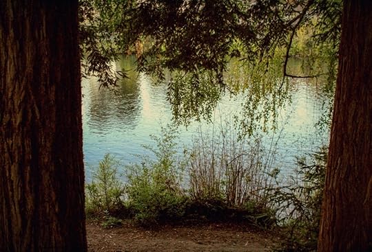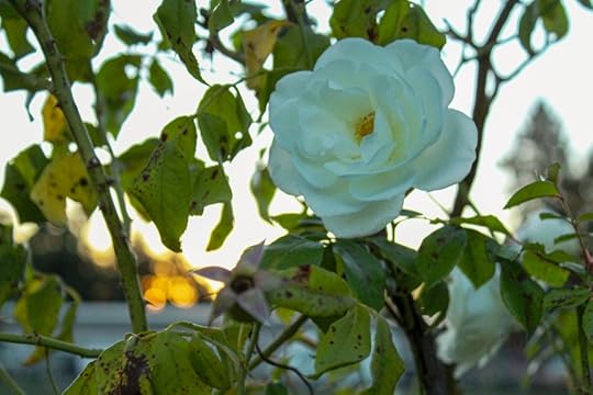 my photos of the Pacific Ocean, a quiet spot by a flowing river, and a white rose, taken in Oregon