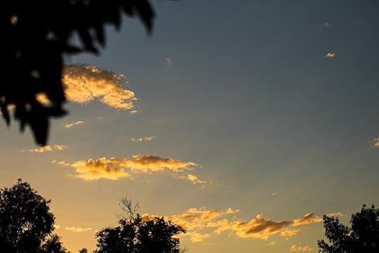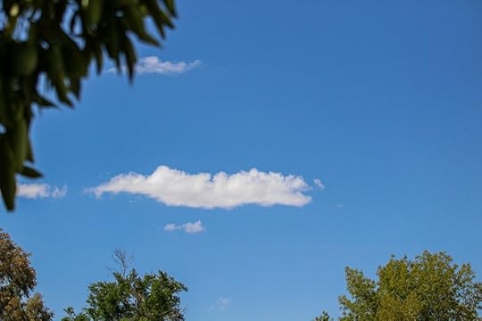 The Sonoran Desert has its share of dramatic skies – they can be mellow, too, like this afternoon’s calming sky-blue sky with puffs of white and treetops in the foreground.
