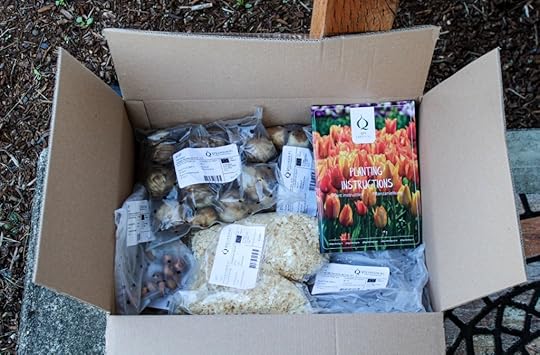 I was provided with a purchase confirmation and a fall delivery time frame but not a tracking number so the delivery date uncertainty left me hoping and wishing I would be visiting during their arrival. It happened! Yay! A variety of tulip bulbs for us to plant and for me to appreciate and admire during future visits.
