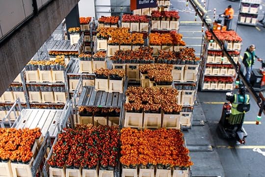 The following photos are from my Royal Flora Holland photo collection. A grand place the length of 200 football fields (775,000 square meters) that felt like Willy Wonka’s magical Factory, for flowers. They employ over 2,600 individuals who help process an astounding 43 million flowers and 5 million plants, on a typical weekday. Sixty percent of the worldwide trade in flowers and plants flows through the Dutch auctions, with Royal Flora Holland accounting for 54% of all flowers and plants sold in the Netherlands. Source