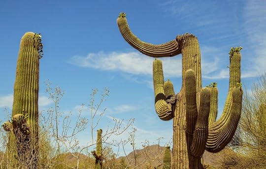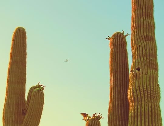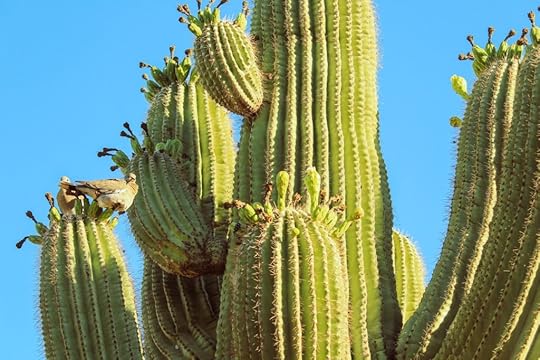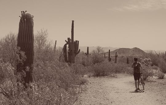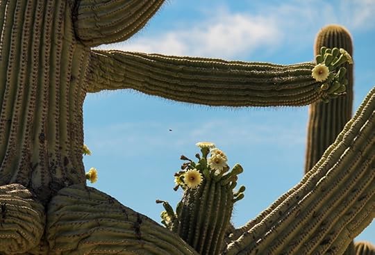 my photos, blooming saguaros in the Sonoran Desert, a roadrunner (finally!), and a chap pushing instead of riding after a flat (coincidentally the same thing happened to me Saturday, testing my strength and patience-both made stronger for it)