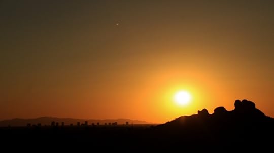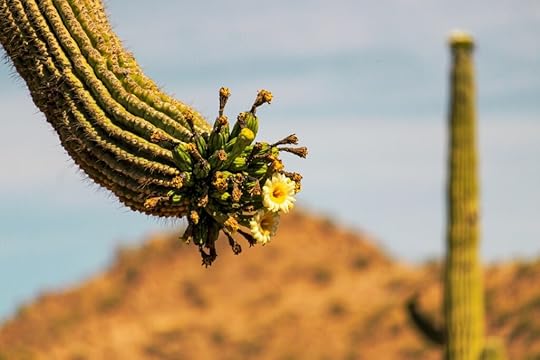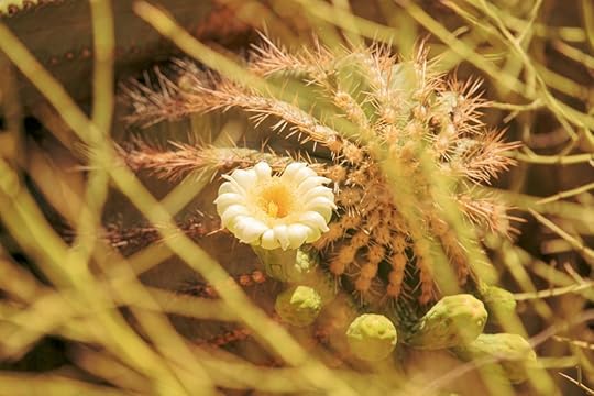 Blossoms, hidden, do hum a gentle tune, telling seekers to return with the sinking moon. A preview of what is yet to come, the jewel of the desert is protected by a natural skin cooling the delicate within. Along a path with heat and an elevation rising, lined with prickly guardians, I kept walking… toward a burst of golden whose rise and fall is a daily bloom we cast our gaze and lives upon.