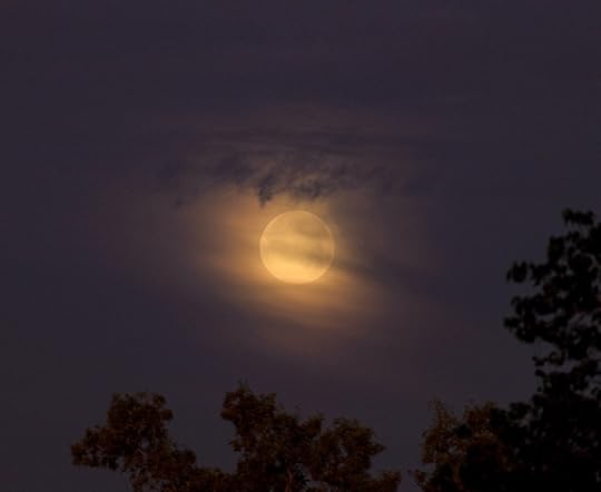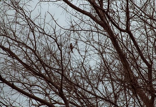 my photos: first morning moon, blue/cloudy sky, and hawk (Feb. 28), second morning moon (Feb. 23),