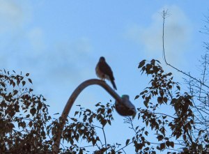 Facing east, focused on capturing a breathtaking sunrise, delighted I was when I turned to the west and found the morning moon poking through. My camera switched off; I was ready to pack it up when to my surprise a hawk swooped down above me before lifting up again to find respite on a nearby lamppost. Not enough time for focused perfection, I was happy to capture its gorgeous image in front of the morning sky.