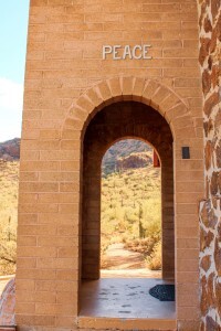 my photos: Safford Peak, NW of Tucson, historic church on land, with some updated “peace” and “love”