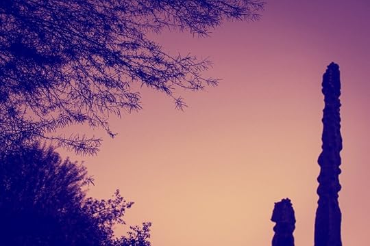 I don’t describe the brilliant contrast between the darkened depths of dying and the vibrant hues of living. And how each has a distinct scent. I don’t tell her the stories that tumble across my mind when I see a fallen saguaro or a charred desert tree. How the saguaro’s aged hollow center, now collapsed, was once a perfect fortress for tiny creatures with spotted feathers or the many birds that may have flown, for the first time, from the arched nook of a sweet acacia tree. I don’t tell her how I sense monsoon storms rising from the disintegration or that I feel the remnants of electricity from lightning or hear the echoes of fierce winds, witnessed. I don’t tell her any of these thoughts as I say a quiet prayer and hold back a tear for the life that once was, along the trail.