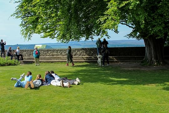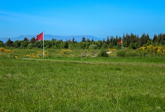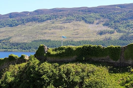 My photos were taken in various locations around Scotland (Urquhart Castle, Loch Ness, Battle of Culloden, & Cawdor Castle). The last photo was taken at my hometown cemetery, taken when I visited my grandfather’s gravesite on Memorial Day (his grave is not featured, though it does have two flags – the one placed and the one I brought). The one of me was taken by a fellow traveler. Most of whom were retired teachers.