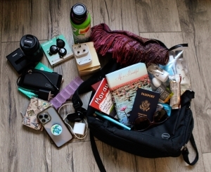 small wallet (driver’s license/credit card/foreign currency/Covid card (never needed btw)/health insurance card/emergency contact infoitinerary & list of our hotels (in case I became separated from the group w/a dead phone-these things could happen)chargers (phone/camera battery/ear buds**)power adapter (American plugs are different)