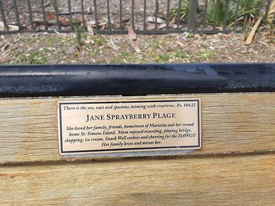 Like most people of a certain age, I sometimes think about how I’d like to be remembered, after I’m gone. When I’m here on SSI, I love walking along the shore reading the bench memorial plaques – such a thoughtful and meaningful way to remember loved ones, while at the same time sharing a beautiful spot for passersby to sit and enjoy the view! I hope you’ll enjoy reading these ones – what would you like your family to write about you?