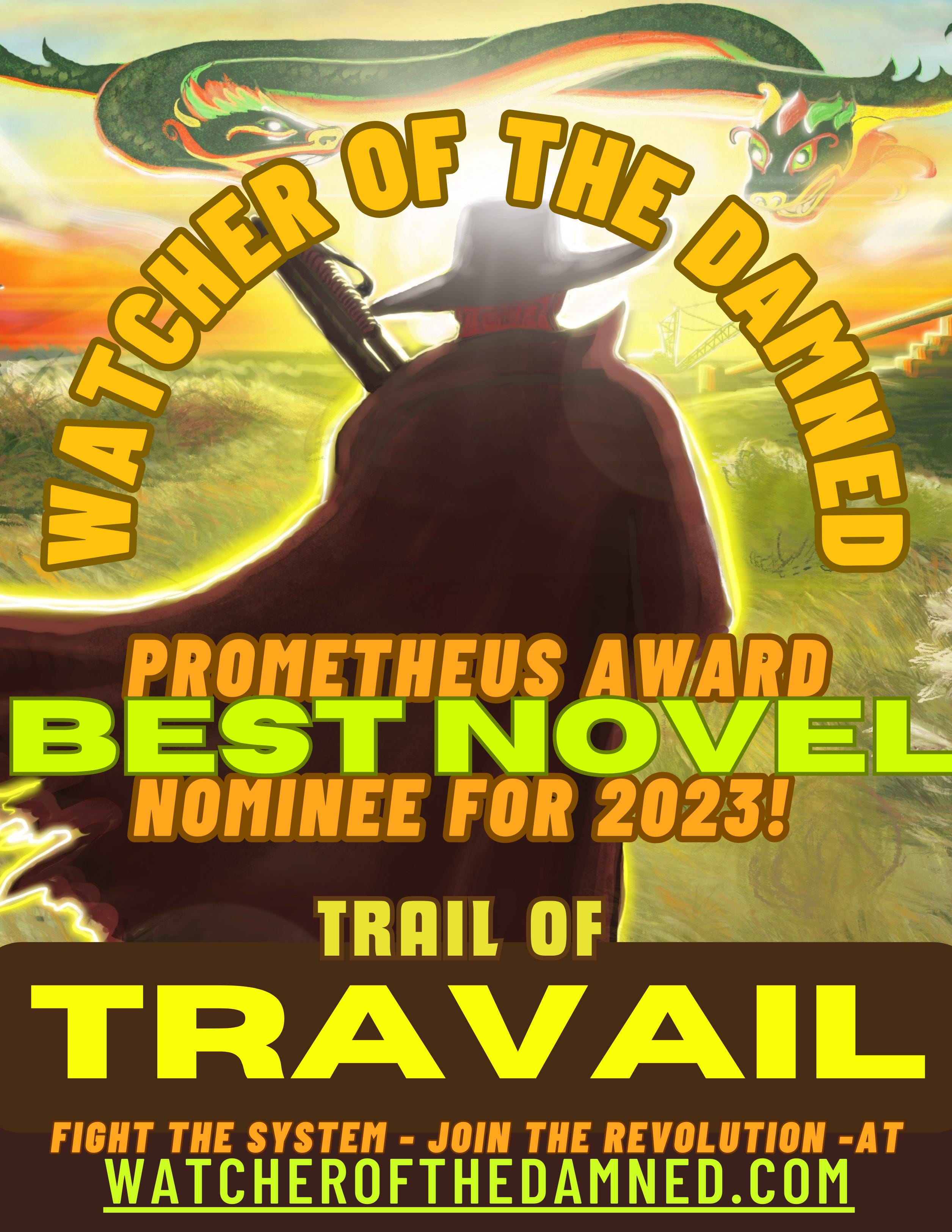 😱HOLY COW: it's a PROMETHEUS AWARD BEST NOVEL NOMINATION for WATCHER of the DAMNED: TRAIL of TRAVAIL!😱