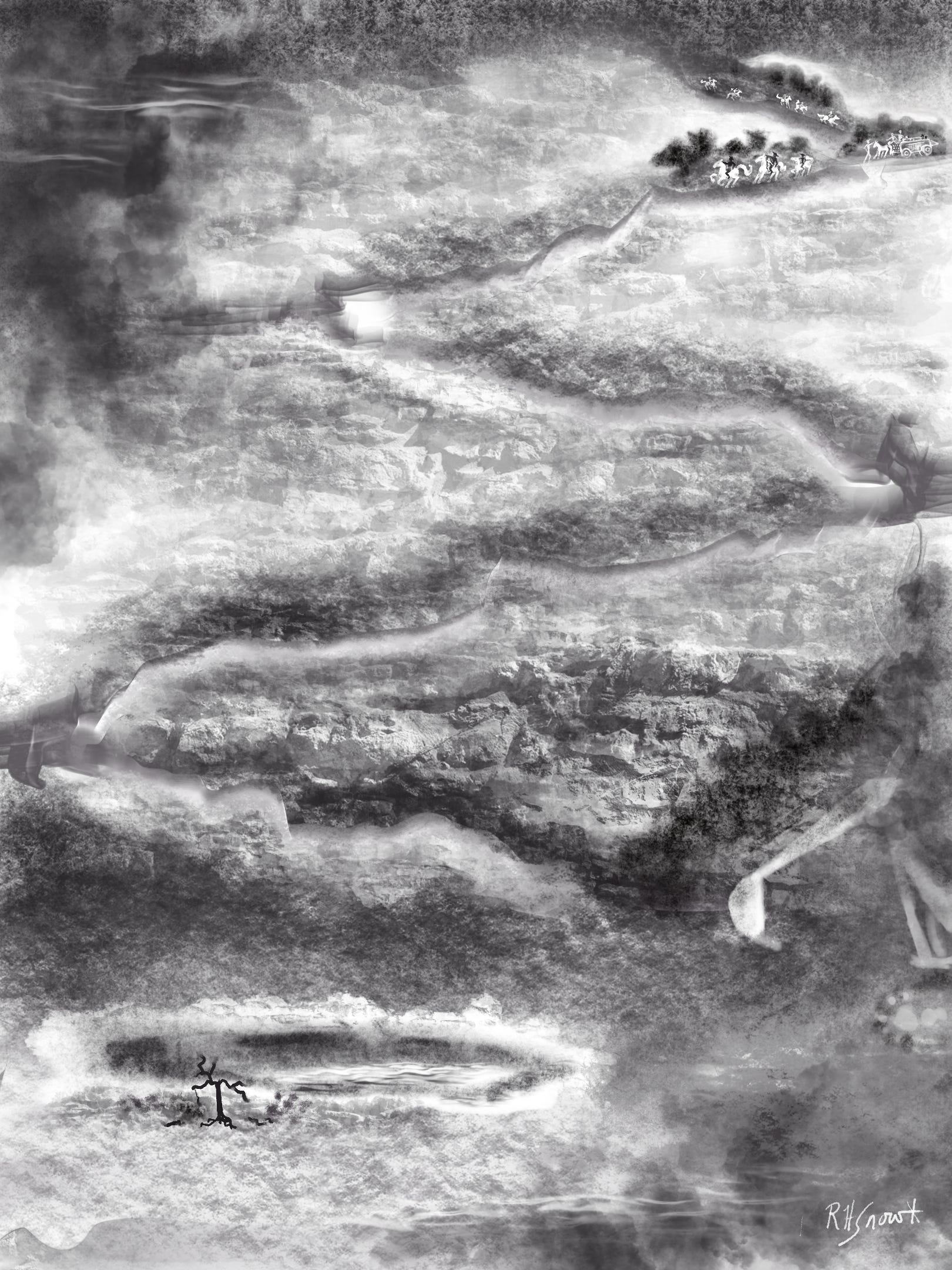 Text within this block will maintain its original spacing when publishedAll around the riders, muddy rivulets of grey water trickled betweenwider streams, webbed across the barren flats. The white caliche helpeddimly reflect starlight, creating a faintly visible path. To their south, a darkgash faintly appeared against the pale soil—a gaping, steep-sided hole inthe earth, water line approximately fifteen feet below the slick edge.Giving the lookout call, Dominic swept his right arm down and towardsthe hazard; each rider behind him echoed the motion in turn to alert thenext rider down the line. Any horses or riders slipping in would surelydrown, unable to climb back out the steep bank.R. H. Snow’s Deep Thoughts from the Dubble-wide of D00m is a reader-supported publication. To receive new posts and support my work, consider becoming a free or paid subscriber.
