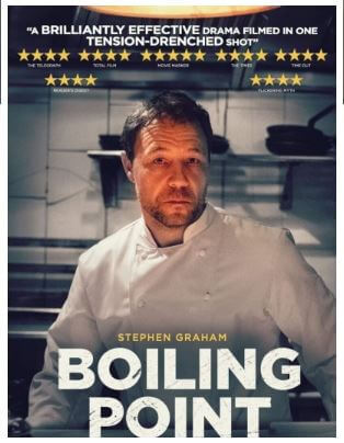 Watch the Boiling Point trailer hereBuckle up, sit back and get ready for a frenetic, hectic, action packed evening in a kitchen… what could possibly go wrong? To set the scene, they have a kitchen inspection and lose points due to some hygiene and storage issues, losing a star rating. The chef is furious, over worked, stressed and there we begin our story. It gets 5 tomatoes on Rotten Tomatoes so guarantees a good night in.