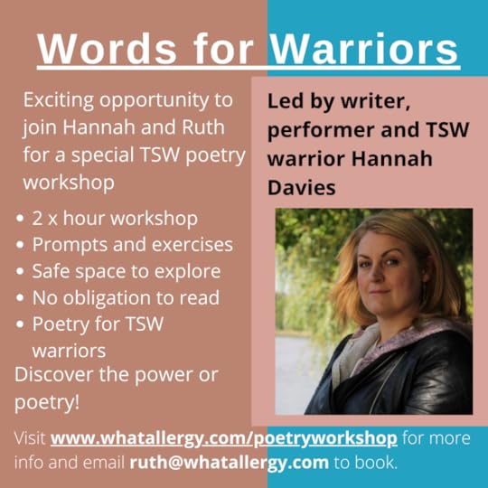2 hour free workshopPrompts and exercises prepared by HannahSafe space to explore your writingNo obligation to read outPoetry for TSW Warriors and eczema people!Discover the Power of Poetry to heal. It’s therapy!