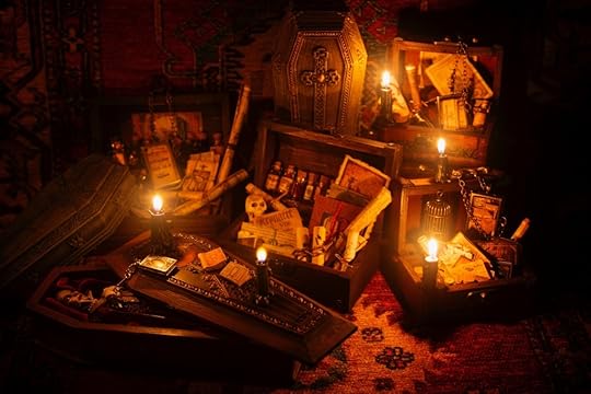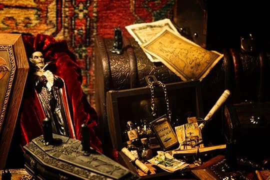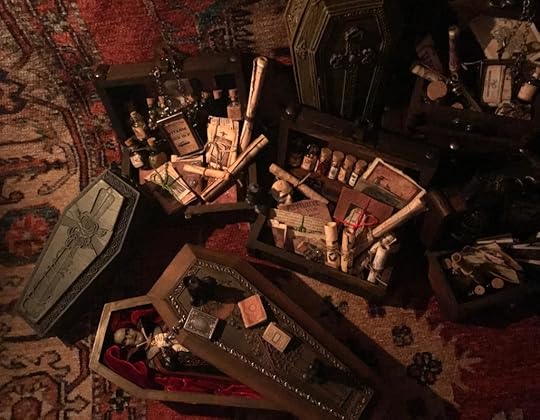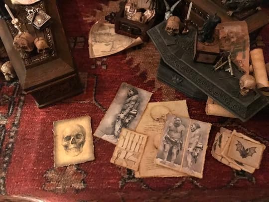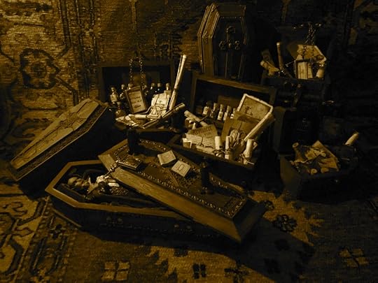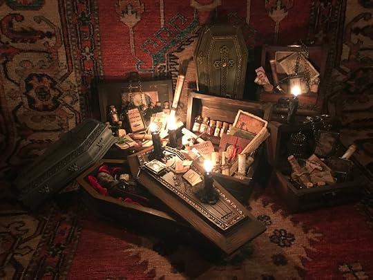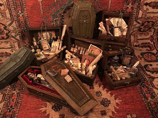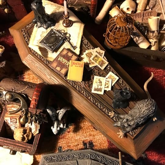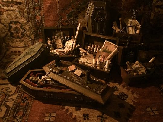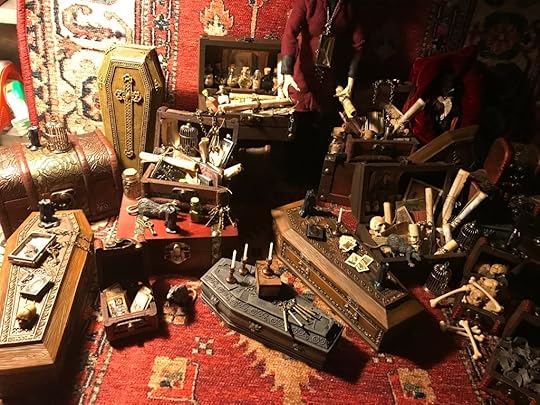 I’ve been collecting and working on the miniatures for the Vampyre Room Boxes for about a year.