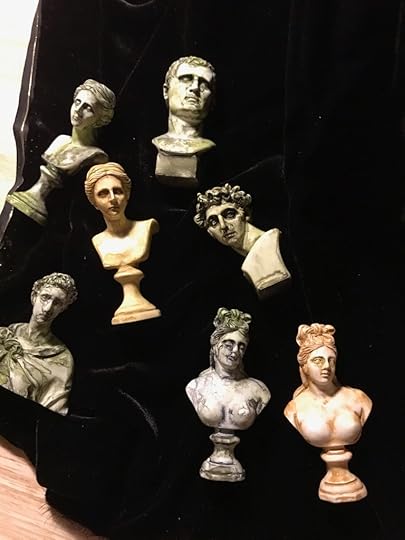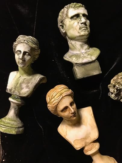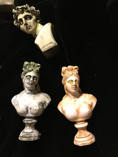 The busts are “antiqued” with gouache then fixed with a matte fixative/varnish from Japan.