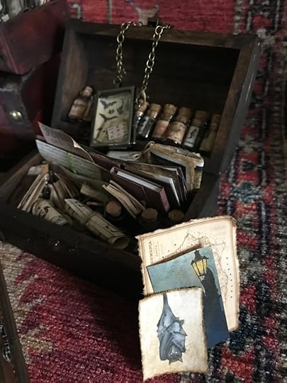 Overall view of the items collected or made for the Vampyre Room Boxes.