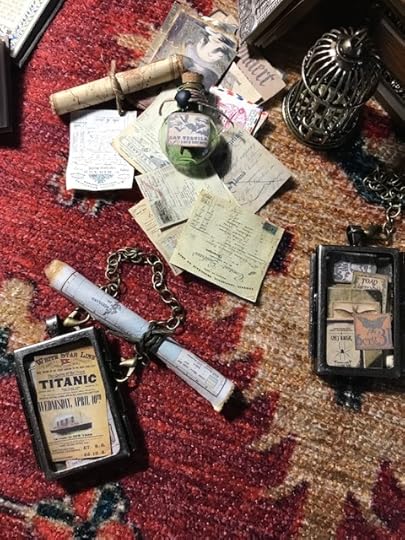 Each of the silver lockets is filled with paper ephemera that I made.