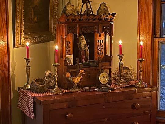 The Yule Tree is decorated and candles lit.